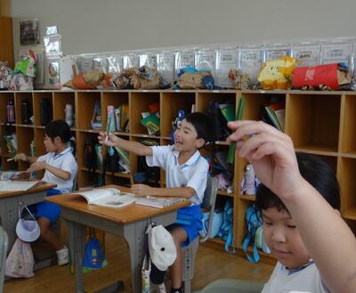 くじらぐもの世界に入って なりきって伝え合う1年生