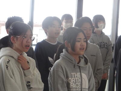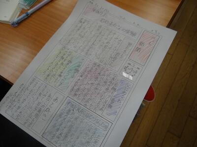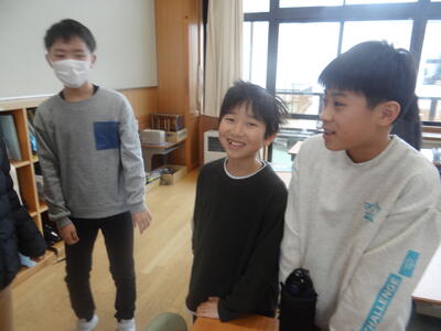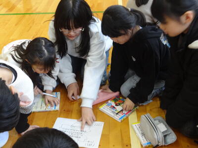 かたつむりチームからおいわいチームへ音読のプレゼント