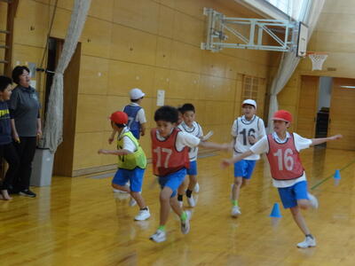 競技の練習を自分たちで作戦を立てながら取り組む6年生の姿