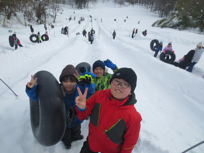 昨日2年生が朝日少年自然の家でチューブ滑りを体験