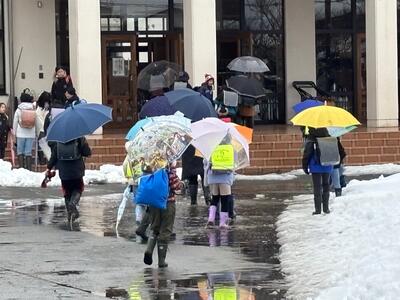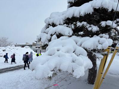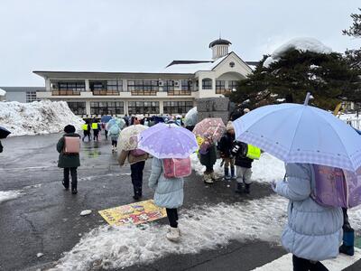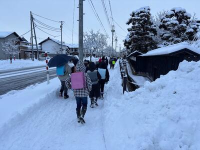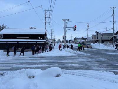 大雪を予想して役場職員さんも子どもたちについて見守りを