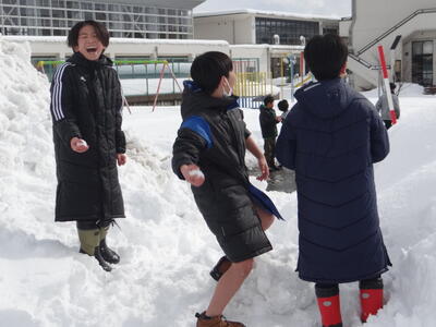寒波が去って雪と戯れる休み時間