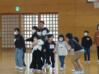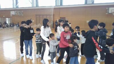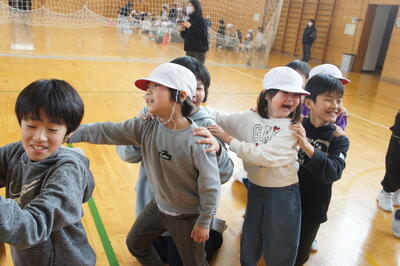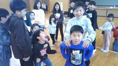 オリエンテーションで5年生と遊びの交流