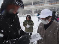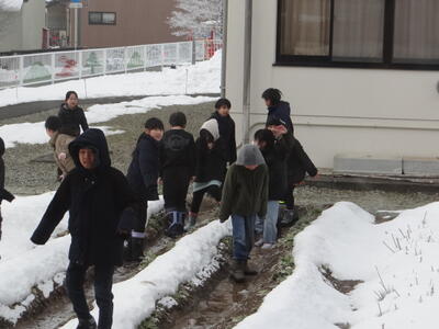 雪が降り積もる中、子どもたちは状況を理解し真剣に行動できました