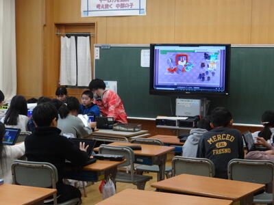 4年生は1組さんは音楽ソフトに合わせてリズム作り