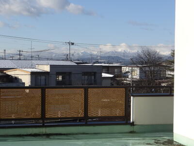 陽が差す遠くの山の連なりは すっかり白くなりました