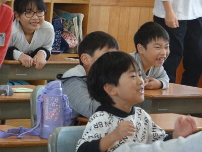 お誕生日集会のゲームを考えながらわくわくの1年生