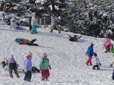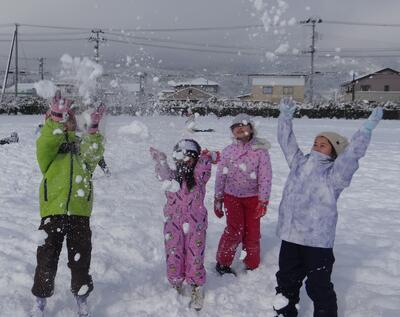 その瞬間を見逃さず1年生の2時間目は雪遊び
