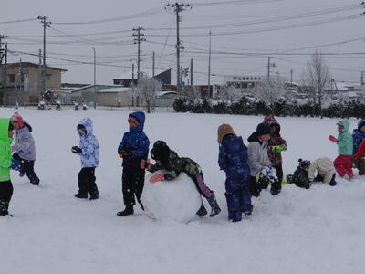 頭を使った後は雪国ならではの生活科「雪遊び」