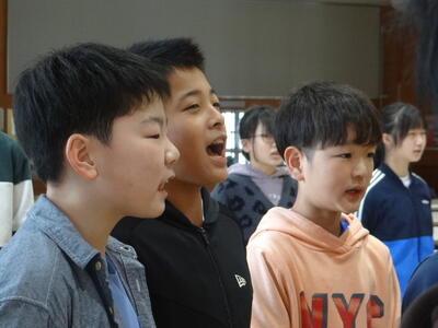 朝から食堂に響き渡る6年生の歌声