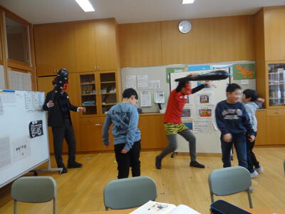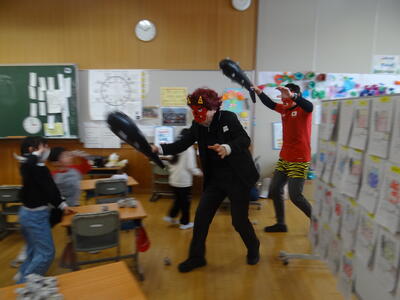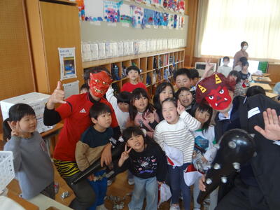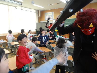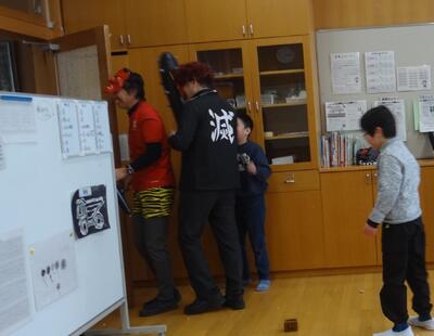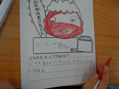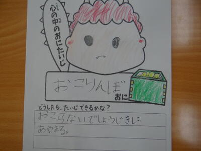 太陽学級では「心の中のオニを退治すっべ」のべんきょう中