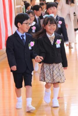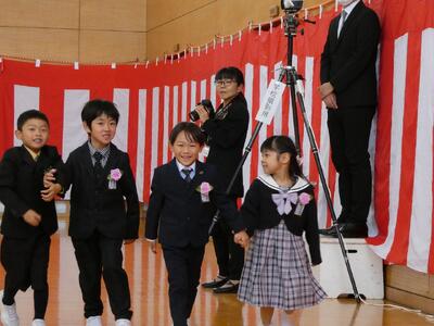 ウキウキしながら笑顔で「新入生入場」