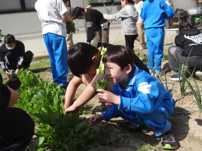 今日は太陽学級みんなで秋に植えた野菜の収穫です